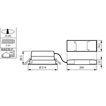 De installatie van deze Philips LuxSpace downlight is erg eenvoudig. Zo is de driver al ingebouwd. Verder maakt de doorvoerconnector het aansluiten in elk systeemplafond een fluitje van een cent. Check voor het installeren wel of de inbouwdiepte (96mm) en de zaagmaat (200mm) overeenkomen met de maten van deze downlight. De twee sterke rvs-klemmen zorgen ervoor dat dit Philips armatuur stevig op zijn plek blijft zitten. Je kunt deze downlight rechtstreeks aansluiten op de netstroom (220-240 Volt).