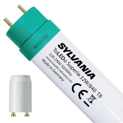 Beschrijving Sylvania LED Buis T8 ToLEDo Superia (EM/Mains) Standard Output 32W 3200lm - 840 Koel Wit | 150cm - Vervangt 58W