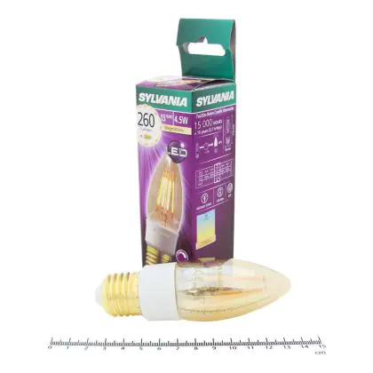De Sylvania ToLEDo Retro Candle is de perfecte vervanger voor oude halogeen en gloeilampen. De lamp lijkt qua vorm op een ouderwetse kaarslamp en past in alle E27 fittingen. Doordat de lamp komt met een gouden afwerking zorgt dit voor nog meer warme sfeer. Door zijn lange levensduur en laag energieverbruik wordt er niet alleen bespaard op energiekosten maar ook op onderhoudskosten doordat je de lamp minder vaak hoeft te vervangen ten opzichte van halogeenlampen.